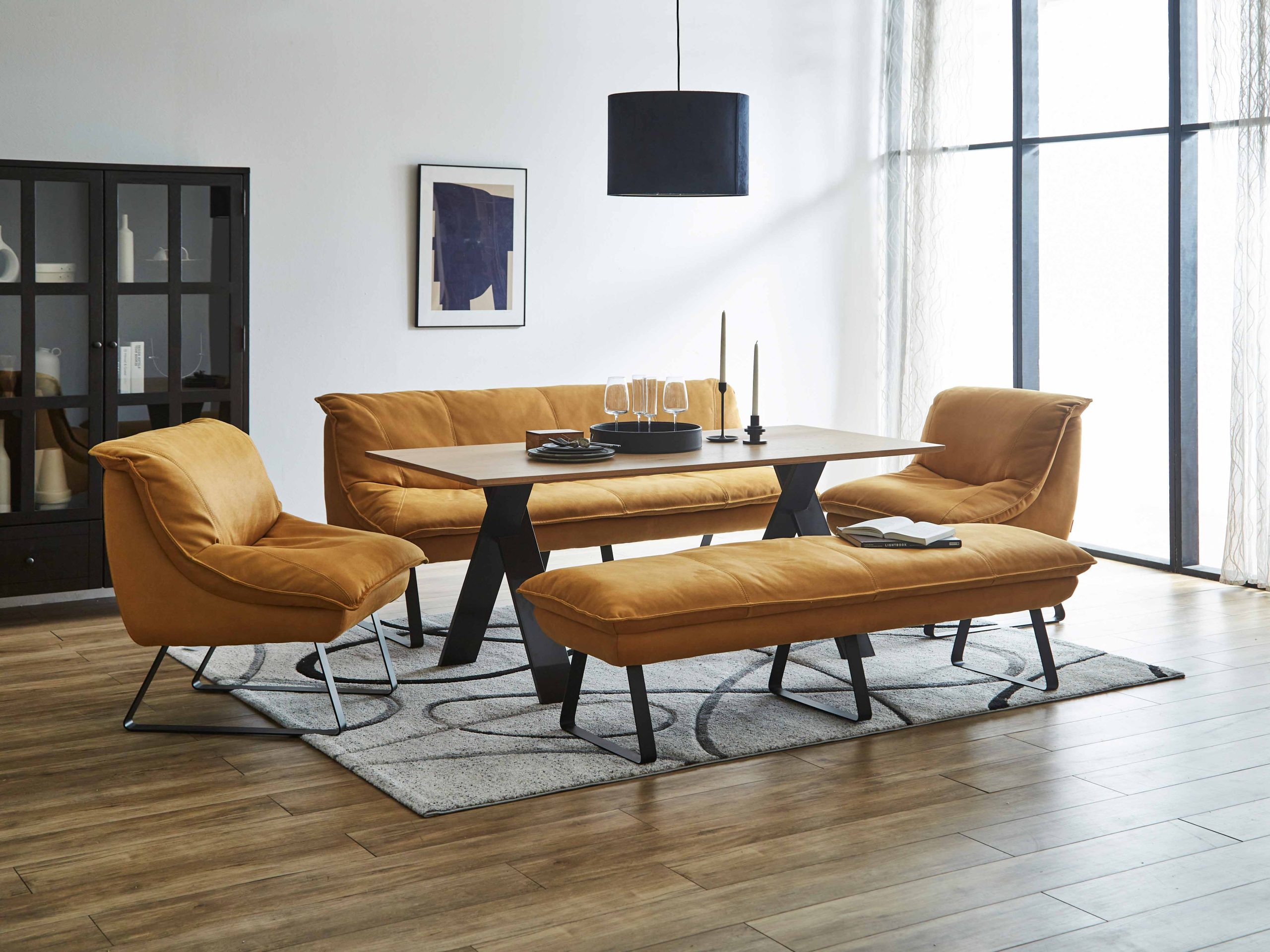 ダイニングとリビングを一体化した、都会的でスタイリッシュなリビングダイニングスタイルを提案するアボットシリーズ。ソファ・ベンチ・テーブルをコーディネートすることで、限られた空間を最大限に豊かに使えます。