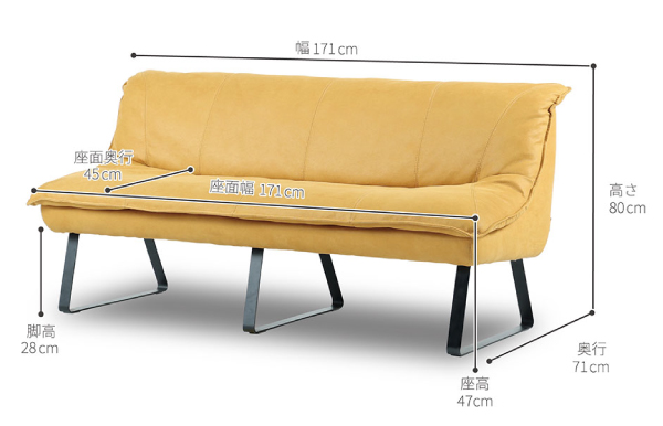- 幅171×奥行71×高さ80cm(座面高47cm)