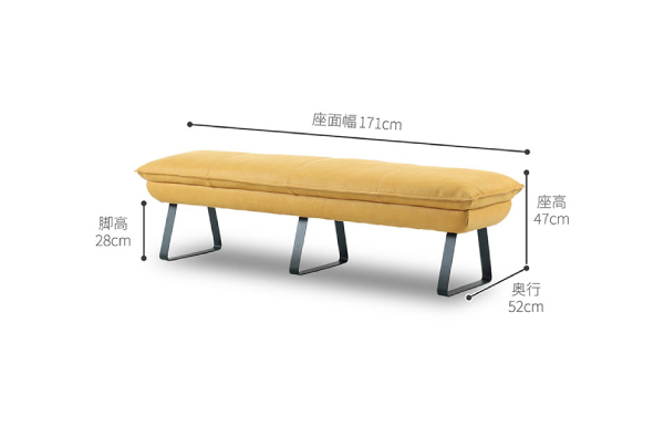 - 幅171×奥行52×高さ47cm(座面高47cm)