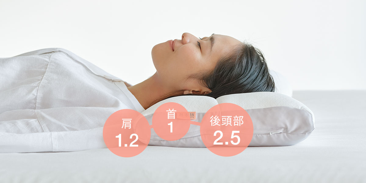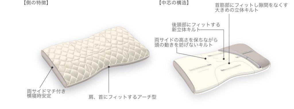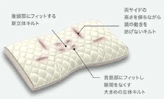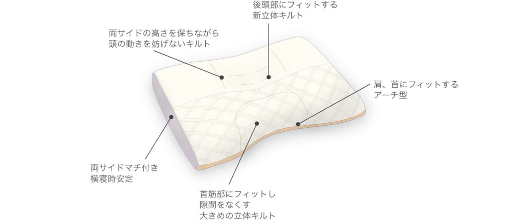 寝心地を重視した特許構造で、首と後頭部をしっかり支えながらも