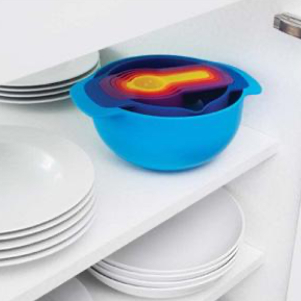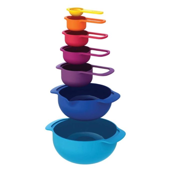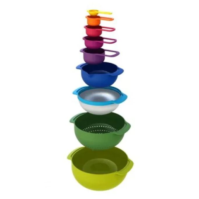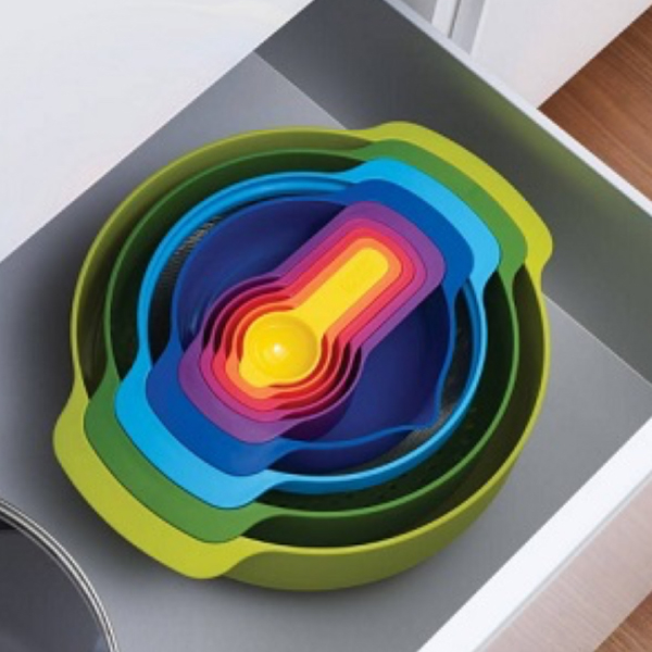 JosephJosephのネストシリーズは、調理に必要な複数のツールを重ねてコンパクトに収納できる、実用性とデザイン性を両立させた人気のキッチンウェアコレクションです。ボウルから計量カップまで、料理やお菓子作りに欠かせないアイテムがセットになっています。